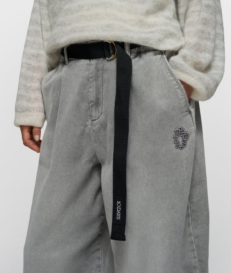 Relaxed Fit Hose - weites Bein - aus Jog Denim (Baumwolle) - elastischer Taillenbund mit Gürtel - schräge Eingriffstaschen - angedeutete Gesäßtasche - unterhalb der linken Eingriffstasche applizierte „Curly 10“-Stickerei